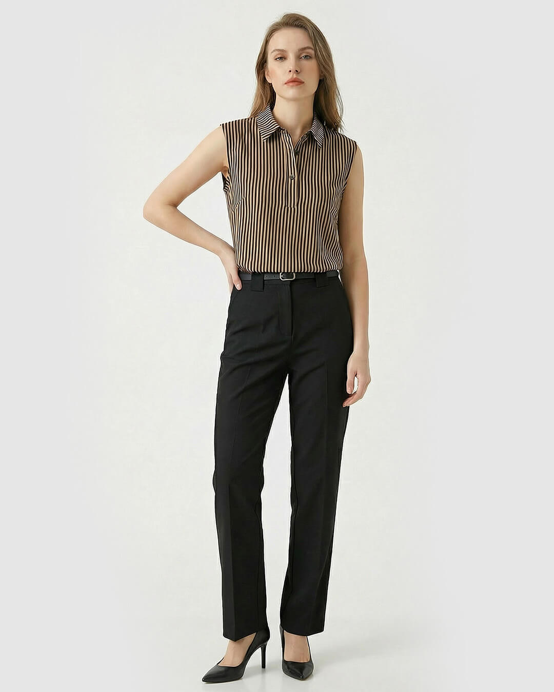 - Western Chic: The sleeveless V-neck cut provides a structured yet relaxed look, embodying smart-casual polish.